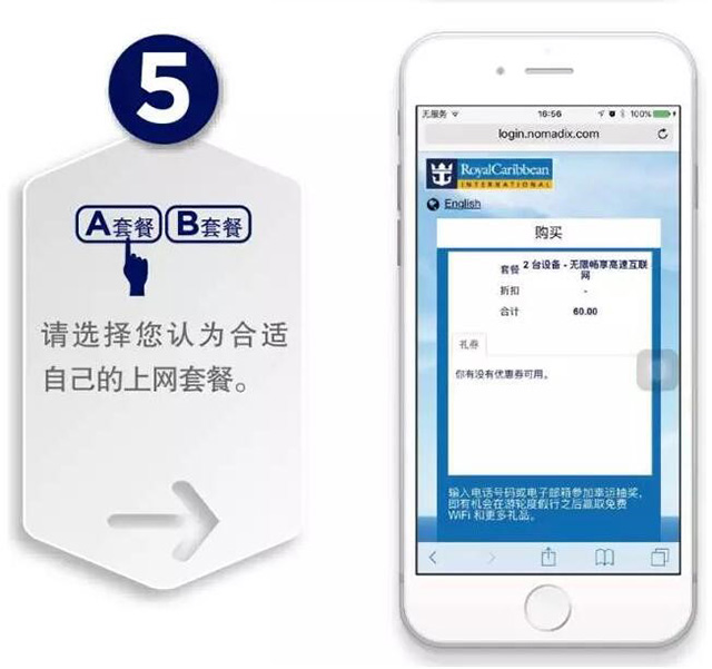 皇家加勒比國際游輪的Wi-Fi上網(wǎng)分兩種套餐形式: