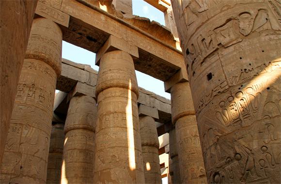 位于底比斯遺址上的阿蒙神廟修建于三千多年前,經歷了多次增建。神廟有十重巍峨的門樓和三座雄偉的大殿,廟內最為壯觀的建筑就是一座密林似的柱廳,這里豎立著縱橫排列整齊的134根參天巨柱。石柱和殿堂的墻壁上滿是生動精致的浮雕和色彩鮮艷的彩繪,記載著神和人的故事。廟內還珍藏有聞名遐邇的方尖碑和多位法老后妃的塑像。